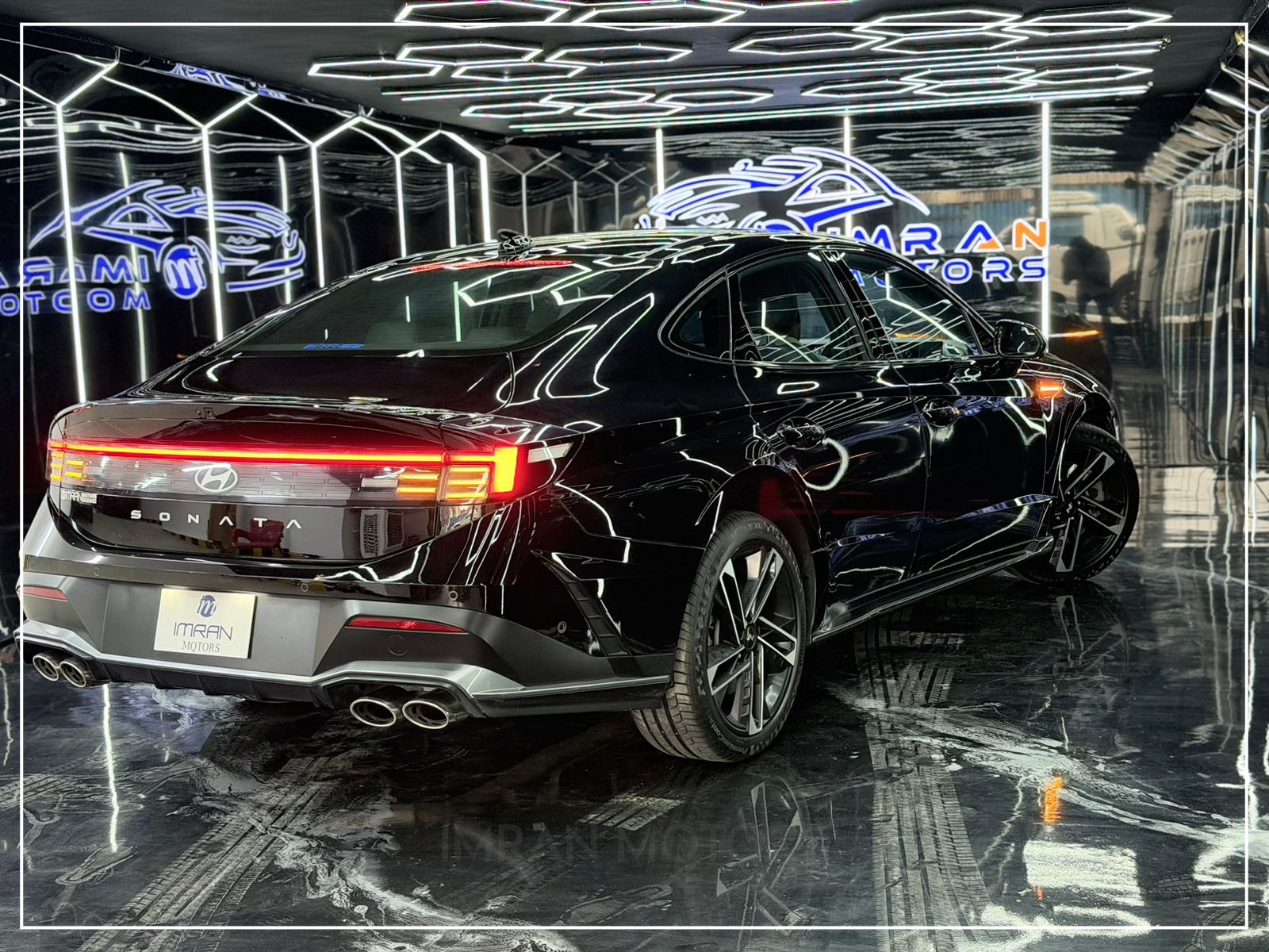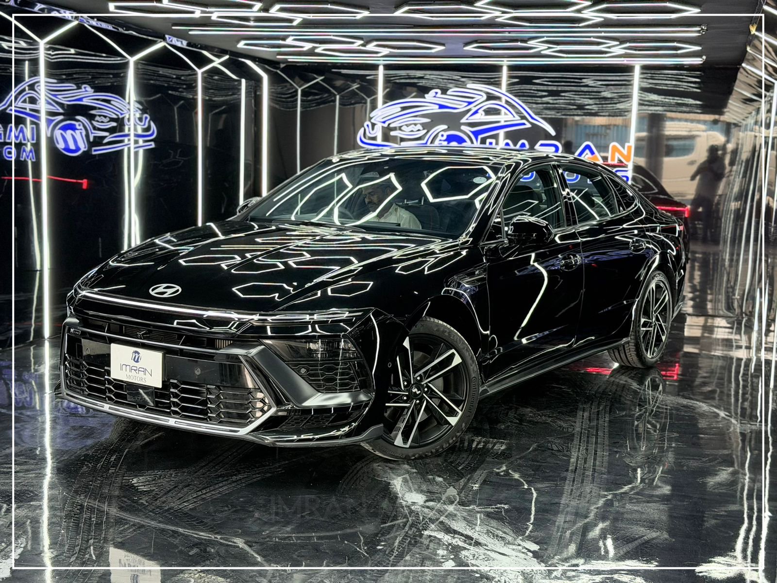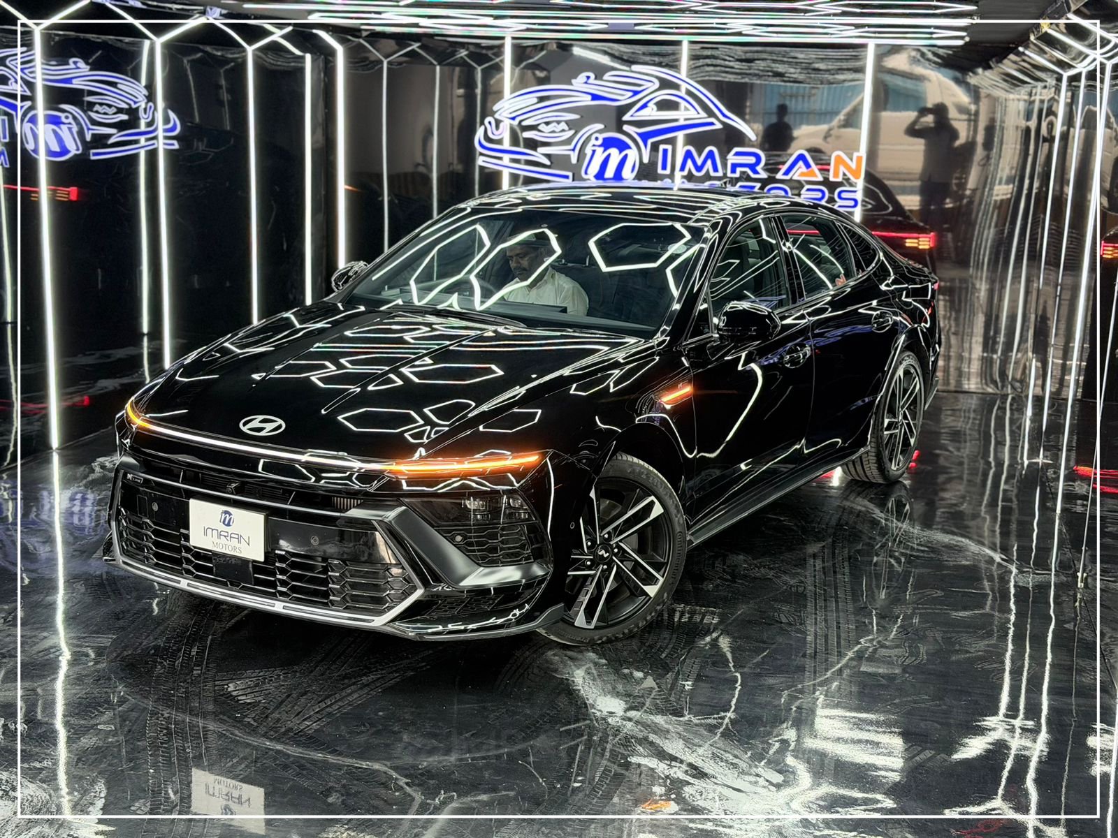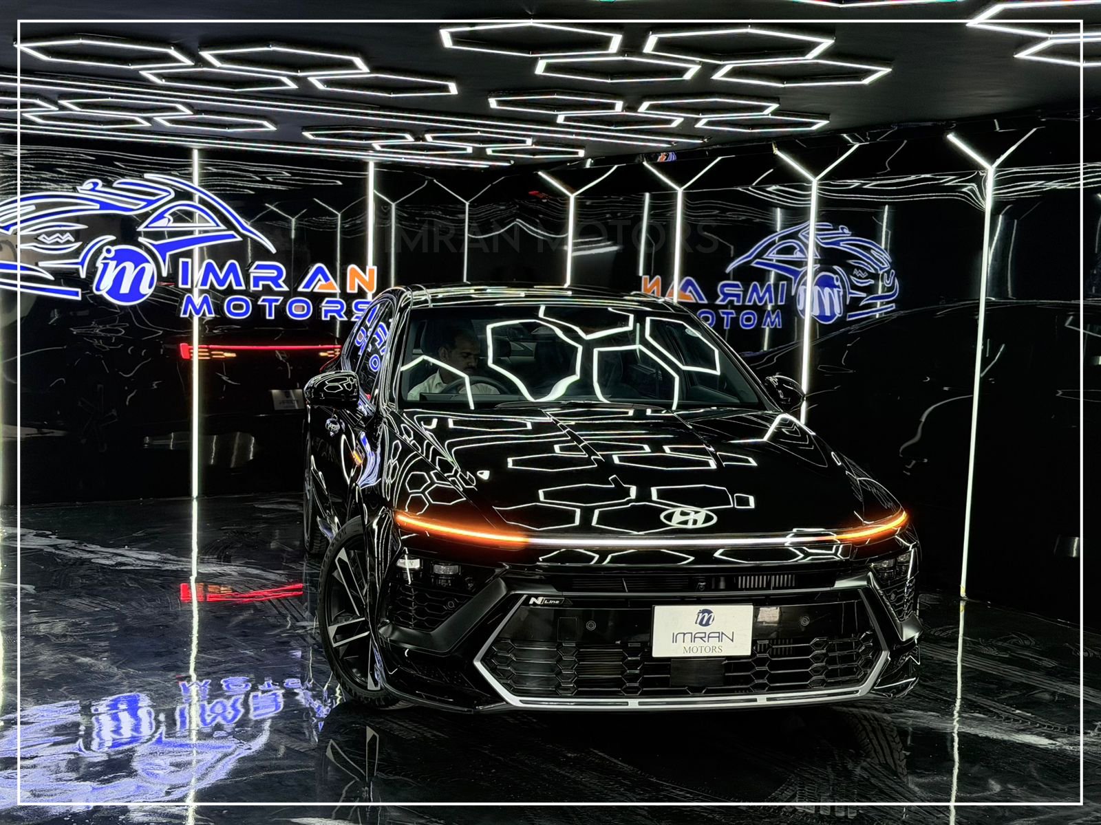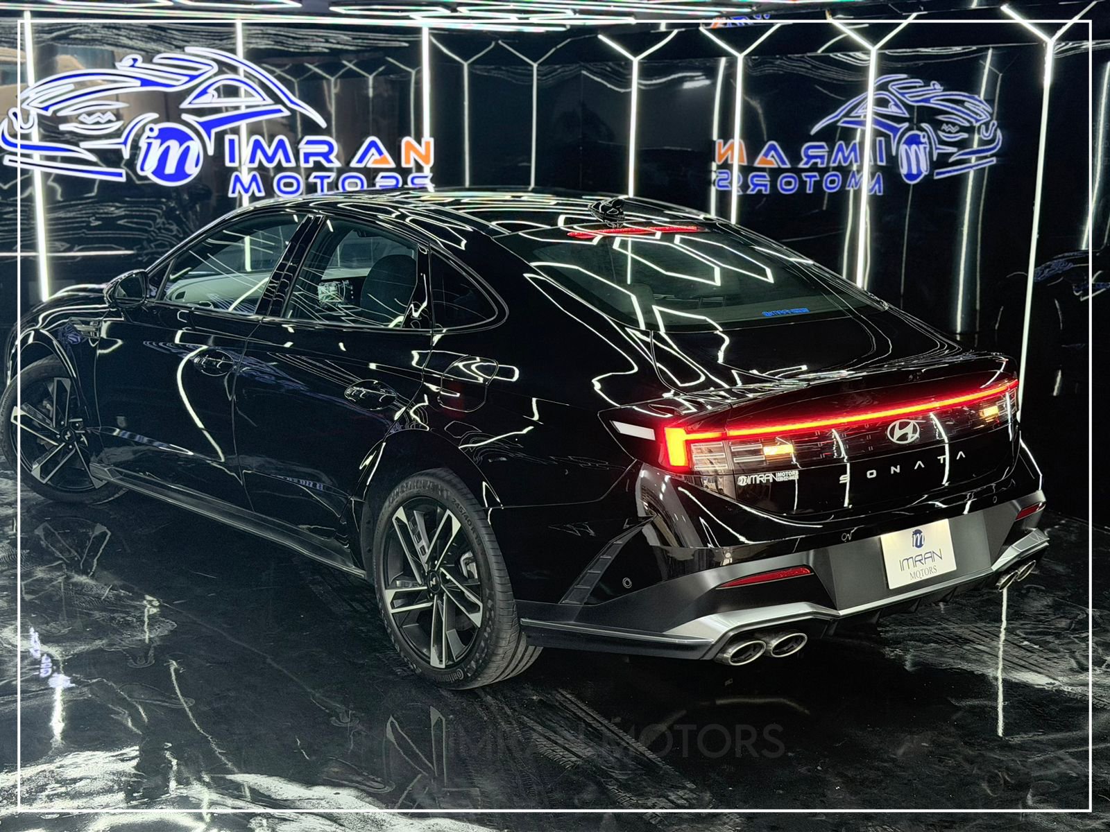 Hyundai Sonata N Line 2025 in black is a premium, unregistered sedan with just 17,000 km mileage, now available at Imran Motors in total genuine, fresh condition. This high-performance luxury car stands out with LED headlights with DRLs, connected LED taillights, panoramic sunroof, chrome grille, and sporty bumpers, giving it a bold and modern look.