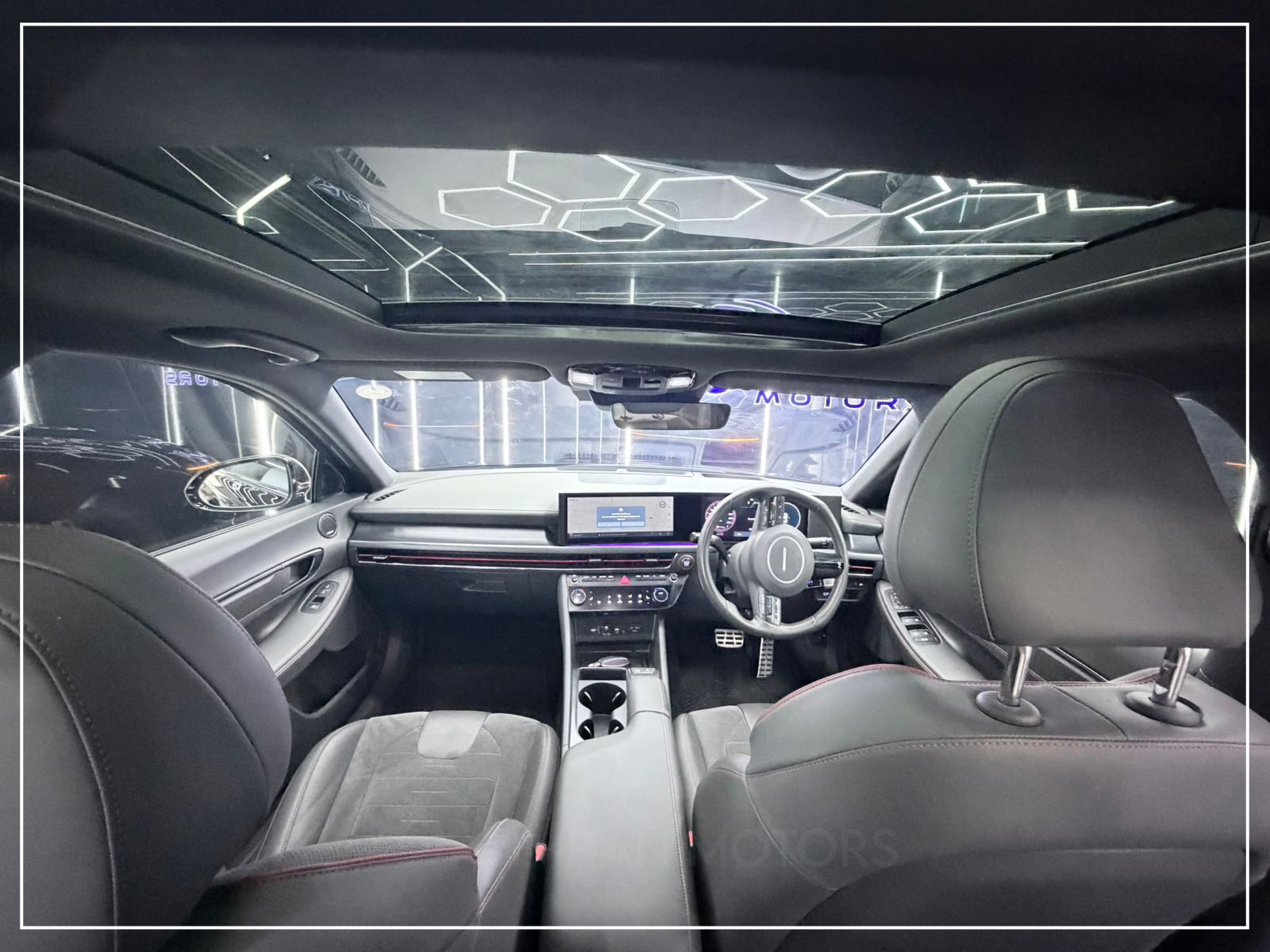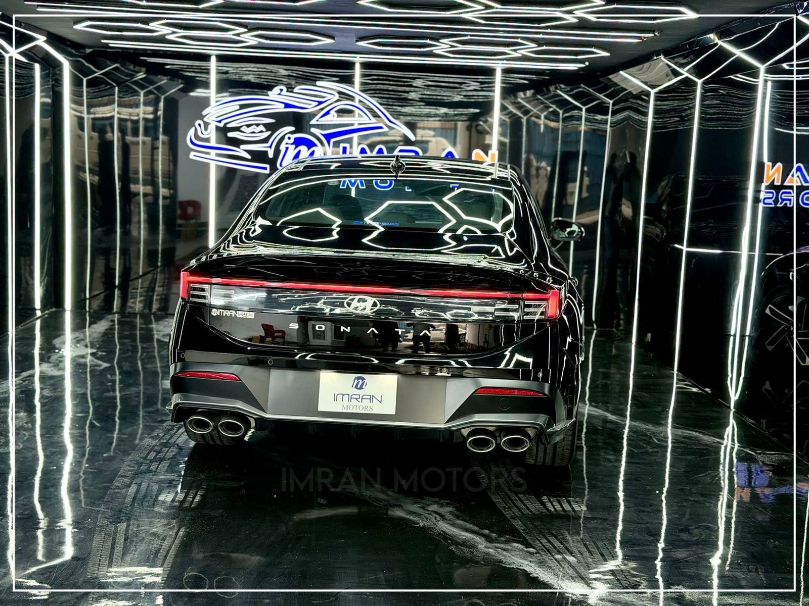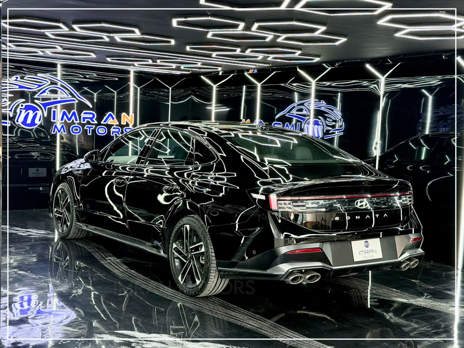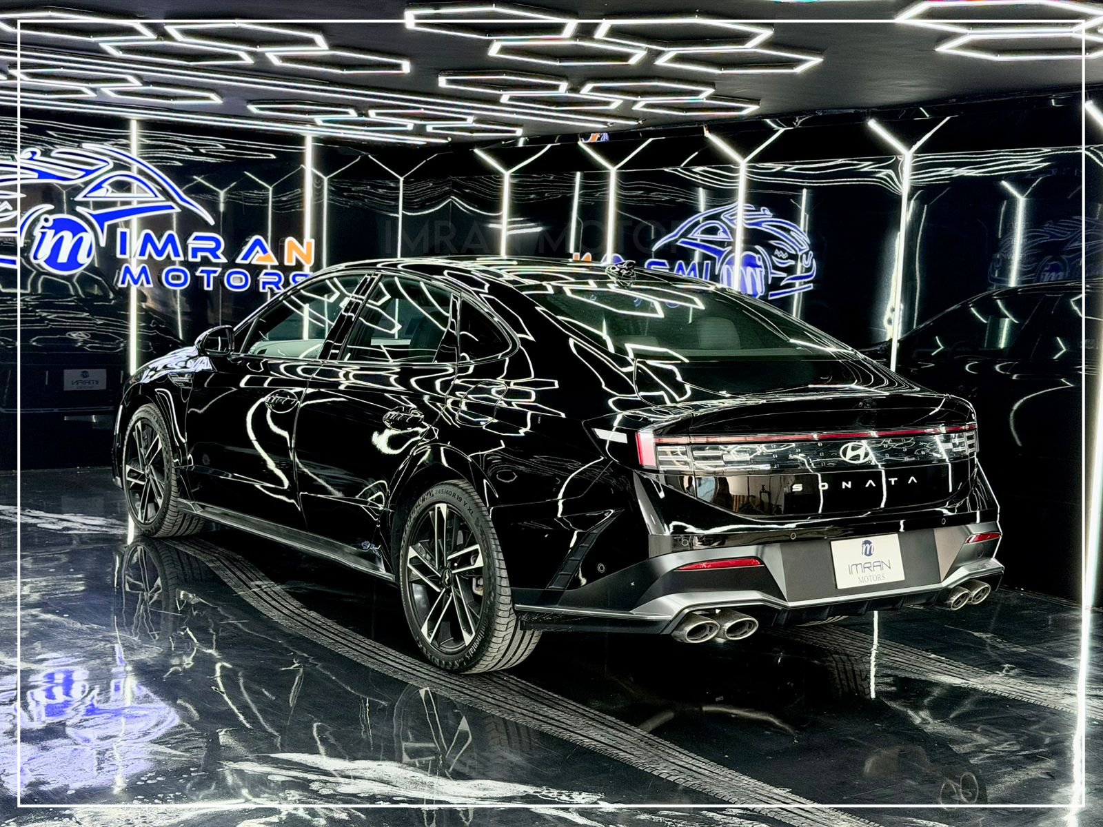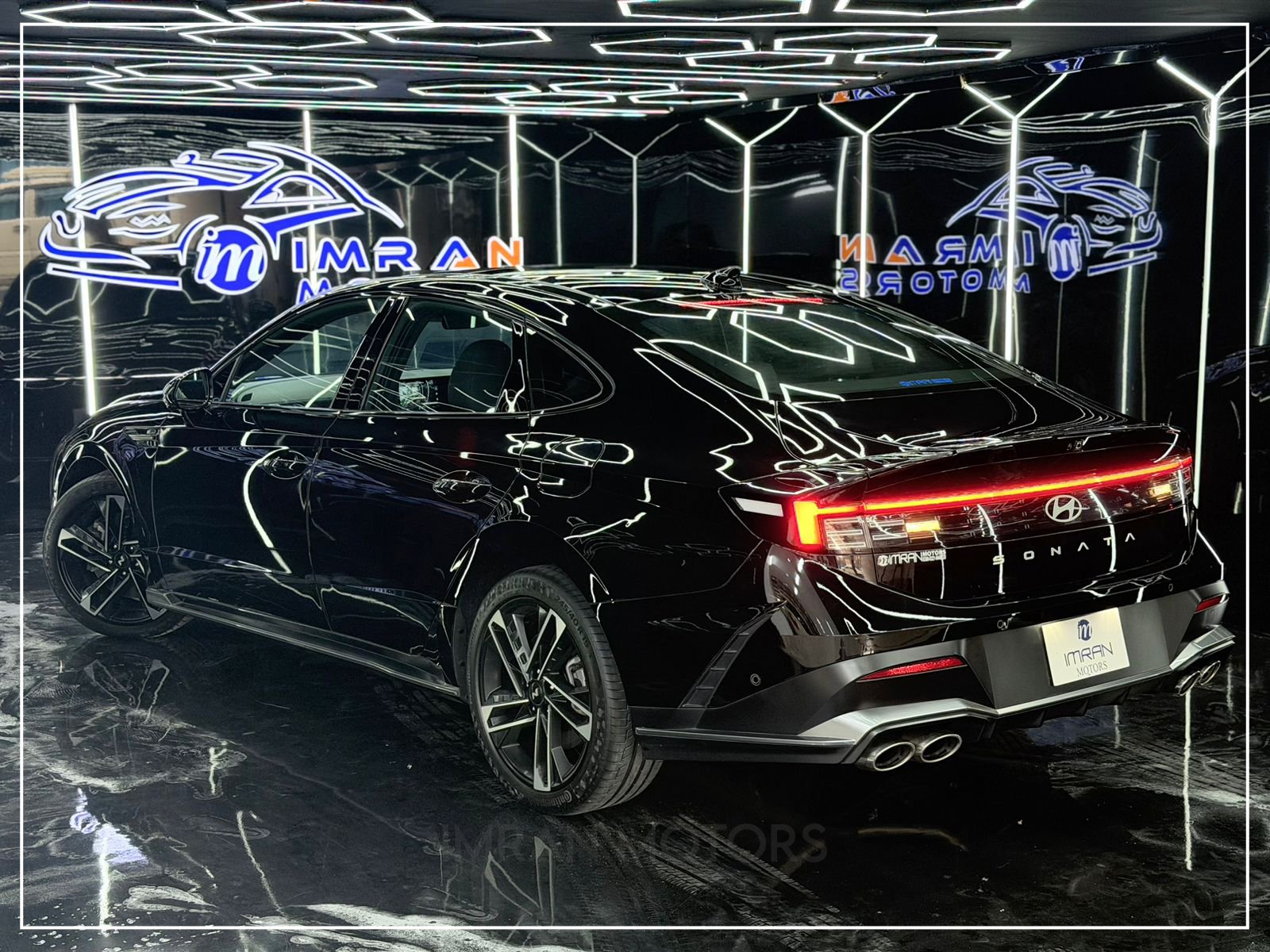 Hyundai Sonata N Line 2025 in black is a premium, unregistered sedan with just 17,000 km mileage, now available at Imran Motors in total genuine, fresh condition. This high-performance luxury car stands out with LED headlights with DRLs, connected LED taillights, panoramic sunroof, chrome grille, and sporty bumpers, giving it a bold and modern look.